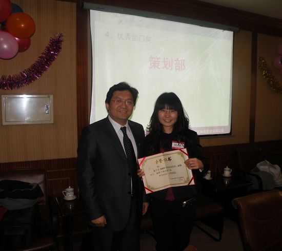 上圖:優秀部門代表劉婷和趙總合影